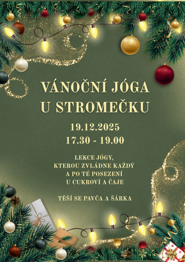 Tradičně se sejdeme i na VÁNOČNÍ JÓZE, kde si nejdříve společně užijeme lekci jógy, kterou povedeme společně s Pavčou a pak posedíme u stromečku a cukroví. Toto milé setkání proběhne v pátek 19. prosince od 17.30 hod. a posedíme tak dlouho, dokud se nám bude chtít. Budeme s Pavčou moc rády, když se k nám přidáte a posdílíme spolu čas, energii a zpříjemníme si vstup do posledního adventního víkendu.